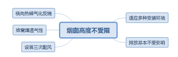 6. 環(huán)保效果優(yōu)異,除了顆粒物超低排放外,其他污染物排放爐具設(shè)計也有著靶向性解決方案,爐具的穩(wěn)定燃燒特性、低溫燃燒狀態(tài)、水套式結(jié)構(gòu)、以及通過對爐膛內(nèi)的合理配風(fēng),結(jié)合燃料煤層高度控制燃燒速度與溫度,降低氮氧化物排放,符合低氮燃燒原理。二氧化硫的控制方面,燃料選用鈣鐵固硫體系,控制爐溫在900℃以下,保證在爐灰中已經(jīng)形成的鈣鐵硫化物不會出現(xiàn)復(fù)分解釋放出SO2。燃燒過程穩(wěn)定有序,前排燃料正常燃燒,后排燃料的揮發(fā)煙氣慢慢析出,在前燃燒室與二次風(fēng)混合撲向前排火焰,再配合爐具特有的三次配風(fēng)設(shè)計,達(dá)到消煙效果。